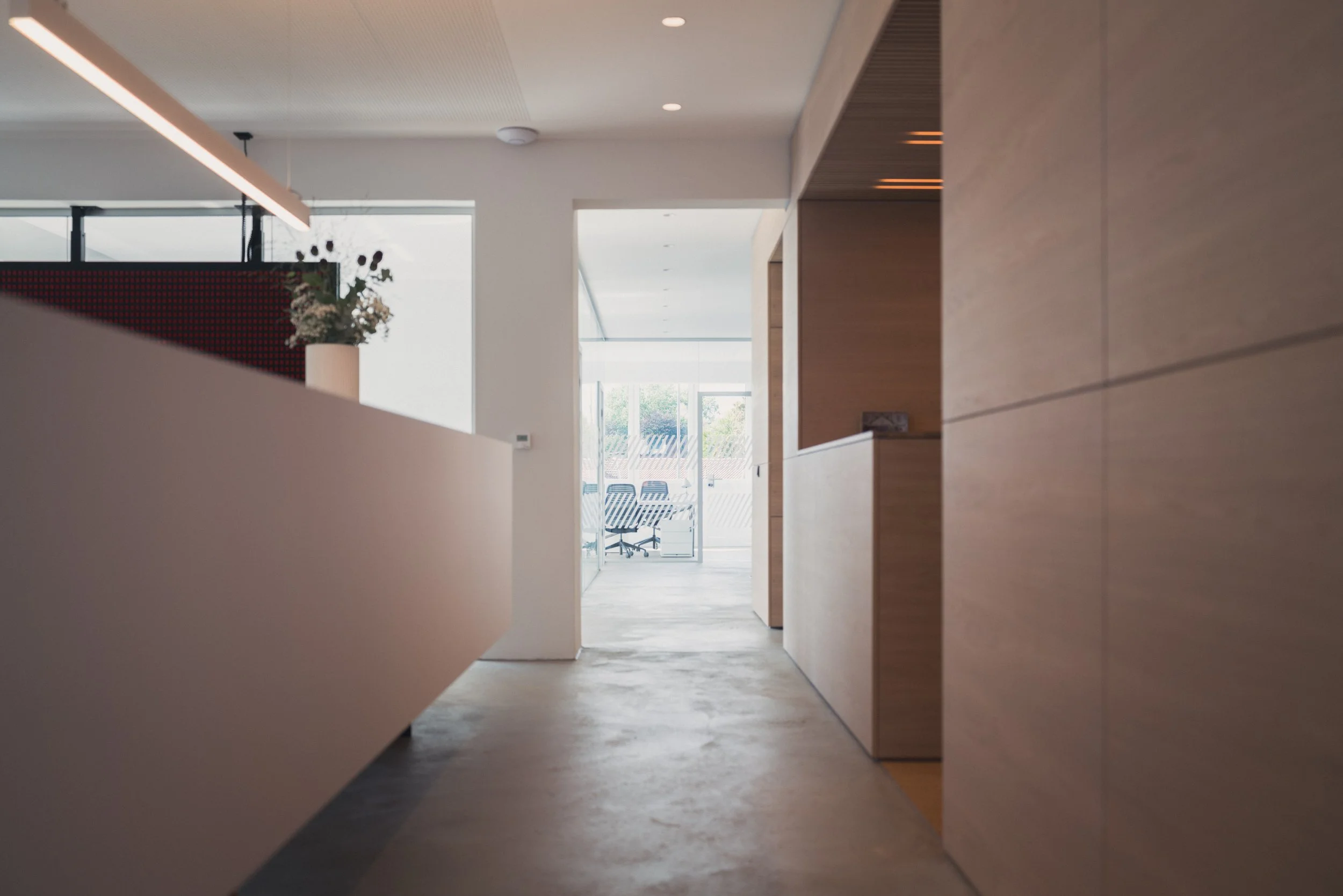 19,5 Quadratmeter mit Platz für bis zu drei Personen, komplett ausgestattet mit Eiermann-Schreibtischen, Artemide-Leuchten und abschließbaren Rollcontainern.